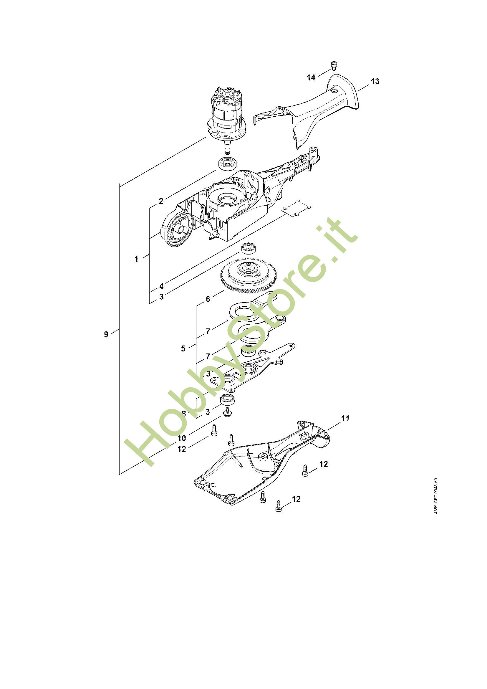 Ricambio Elettromotore Tosasiepi a batteria (HLA) HLA 86 STIHL Contiene anche i ricambi n. 2 e 10