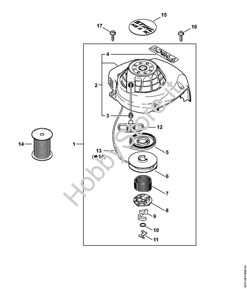 Ricambio Carenatura ventola con dispositivo di avviamento Tagliasiepi (HS) HS 82 RC-E STIHL Contiene anche i ricambi da n. 2 a 13