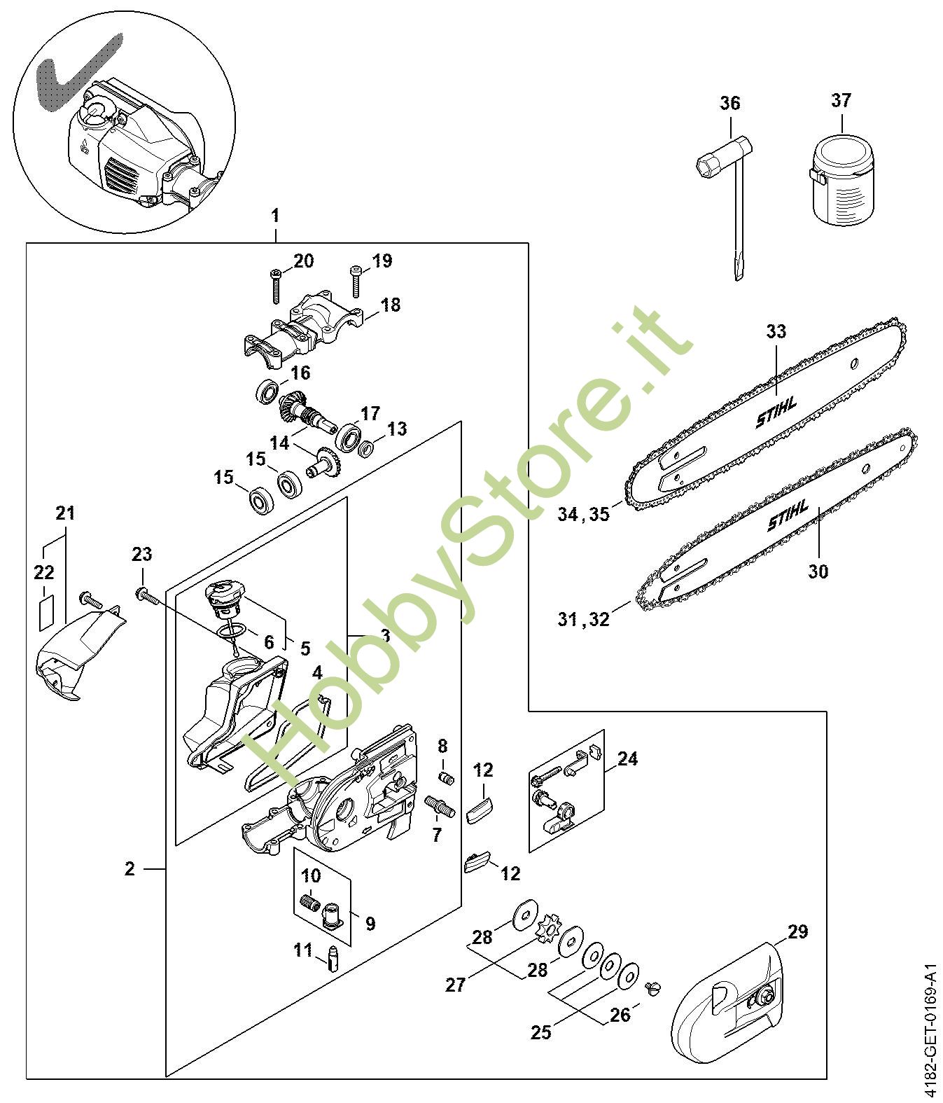 Ricambio Riduttore Attrezzi di applicazione (-KM) HT-KM STIHL Contiene anche i ricambi da n. 2 a 29