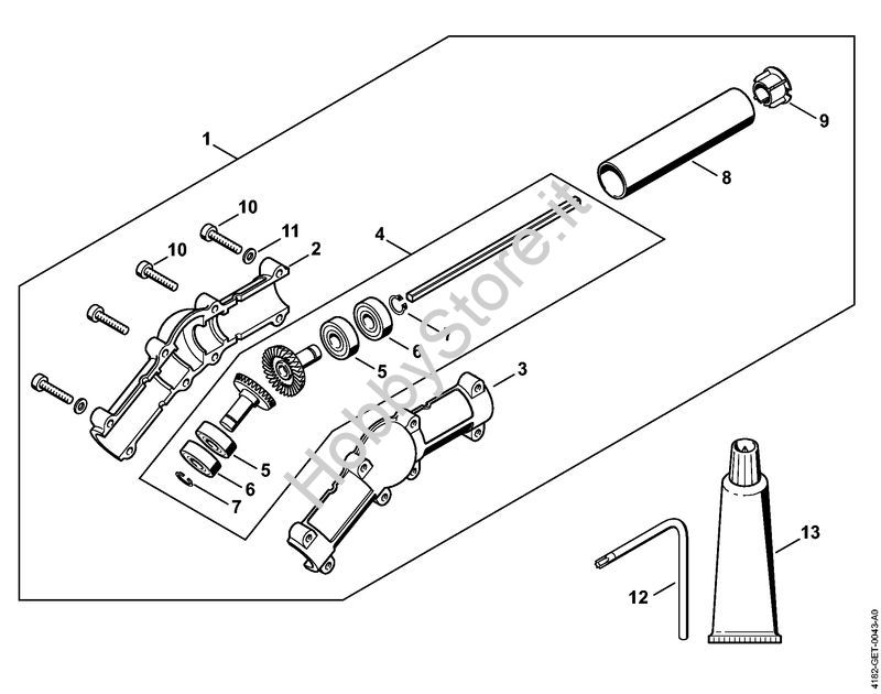 Ricambio Riduttore angolato Sramatori telescopici (HT) HT 132 STIHL Contiene anche i ricambi da n. 2 a 11