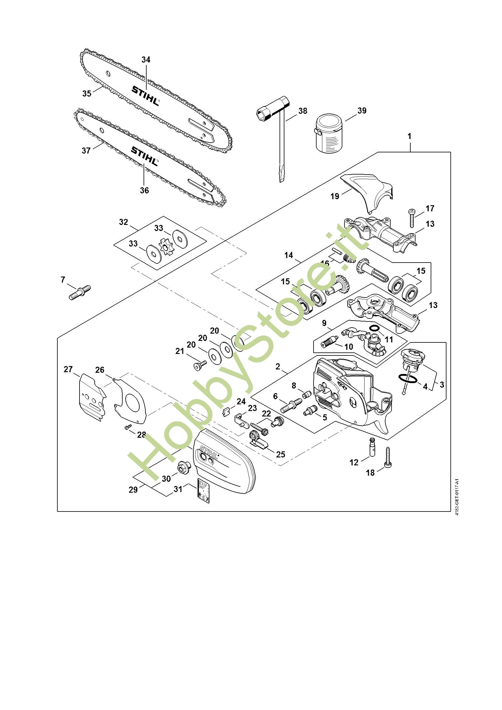 Ricambio Riduttore Sramatori telescopici (HT) HT 133 STIHL Contiene anche i ricambi nr. da 2 a 6, 8 a 31
