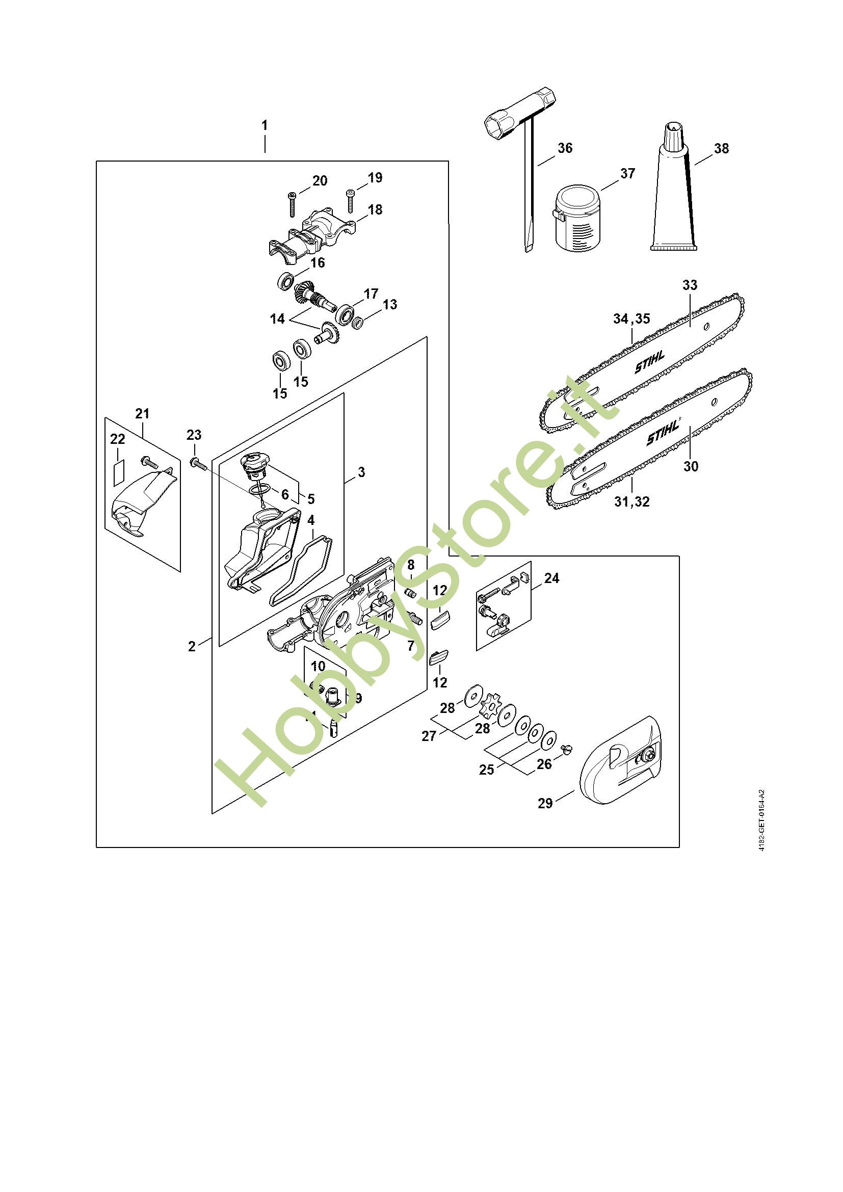 Ricambio Scatola riduttore Sramatori telescopici (HT) HT 134 STIHL Contiene anche i ricambi da n. 3 a 11