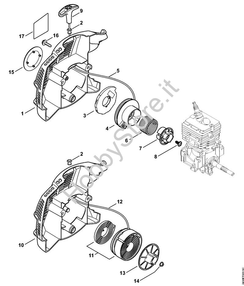Ricambio Coperchio avviamento Sramatori telescopici (HT) HT 56 C-E STIHL Contiene anche i ricambi n. 2