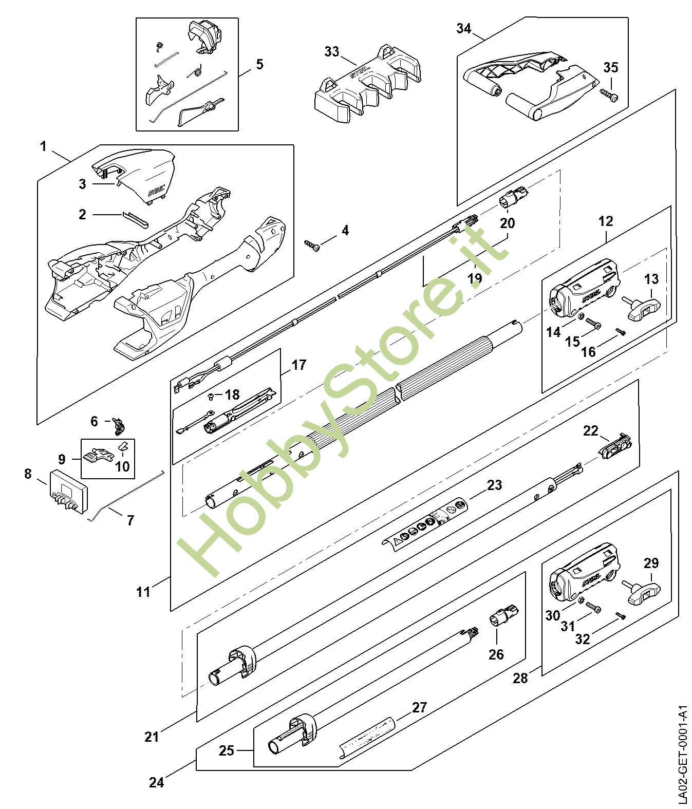 Ricambio Stelo Sramatori lunghi a batteria (HTA) HTA 50.0 STIHL Contiene anche i ricambi da n. 12 a 20