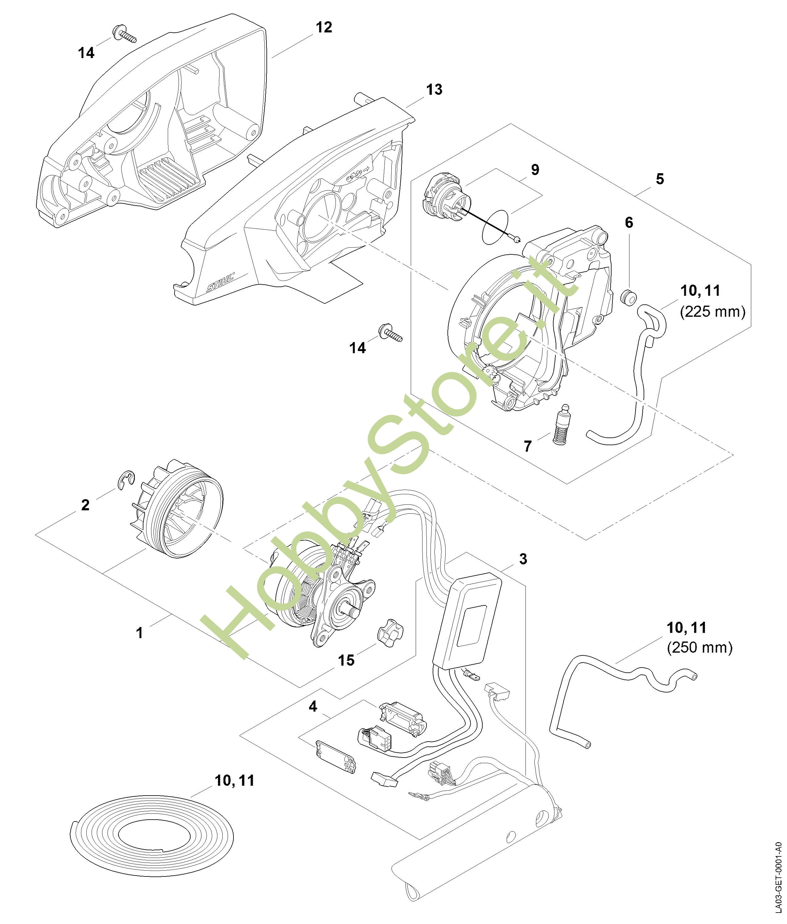 Ricambio Elettromotore Sramatori lunghi a batteria (HTA) HTA 66 STIHL Contiene anche i ricambi n. 2 e 15