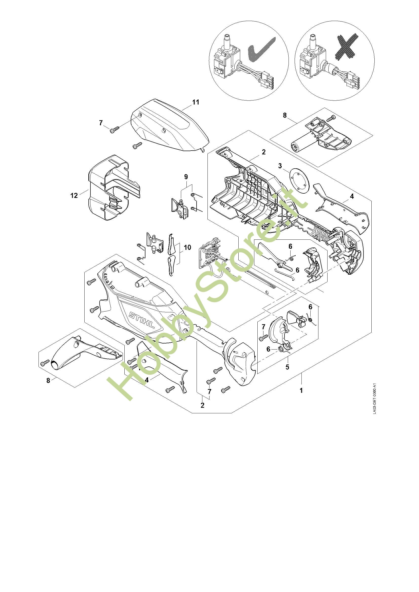 Ricambio Corpo impugnatura Sramatori lunghi a batteria (HTA) HTA 86 STIHL Contiene anche i ricambi da n. 2 a 7