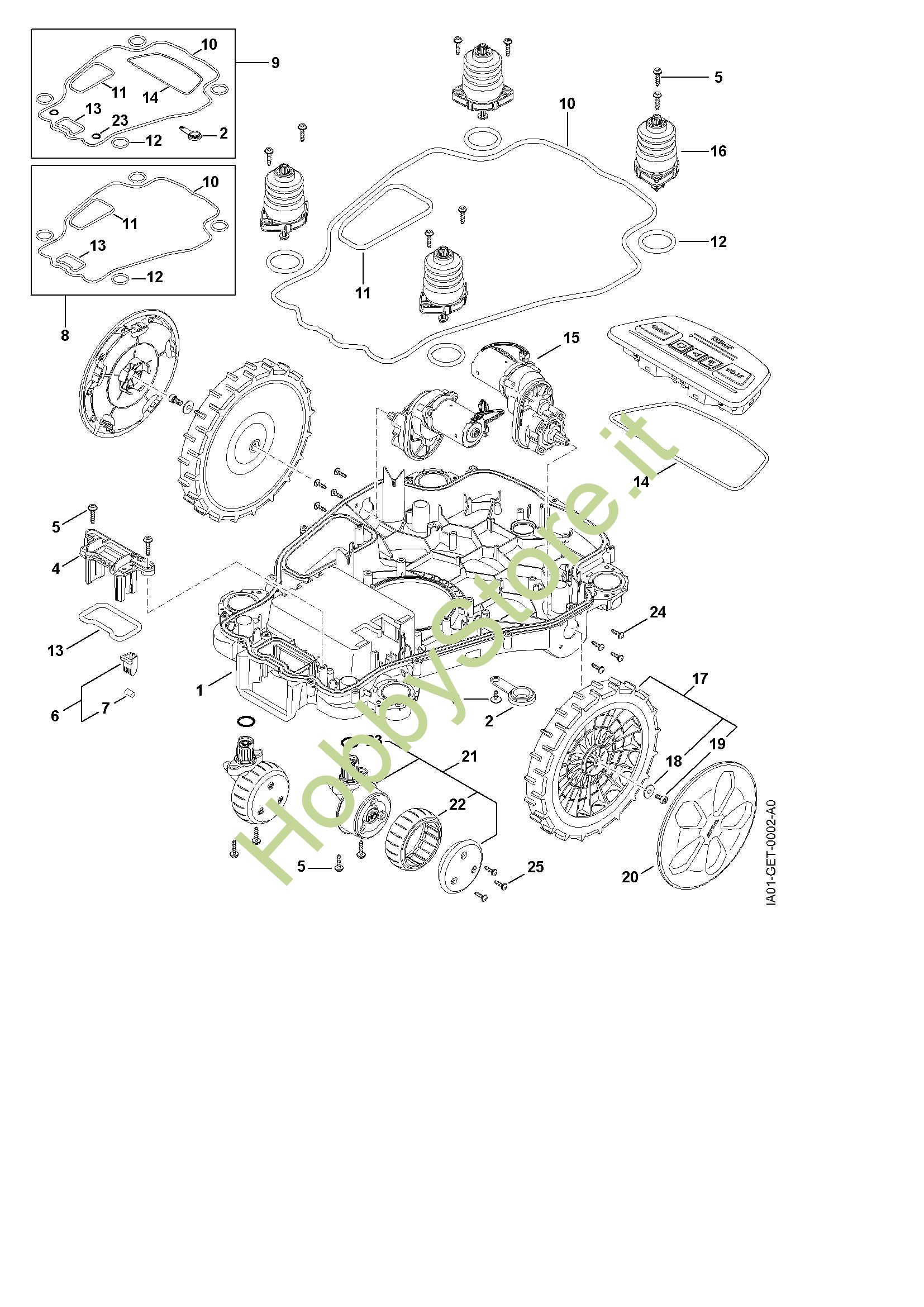 Ricambio originale Serie guarnizioni Robot tosaerba (iMOW) iMOW 5.0 Stihl Contiene anche i ricambi nr. 2, 10 a 14, 23