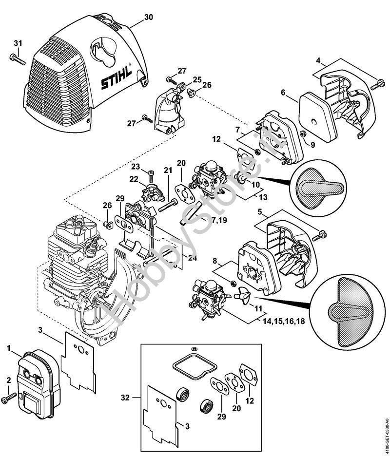 Silenziatore, filtro aria Motori Kombi (KM) KM 100 R della marca STIHL