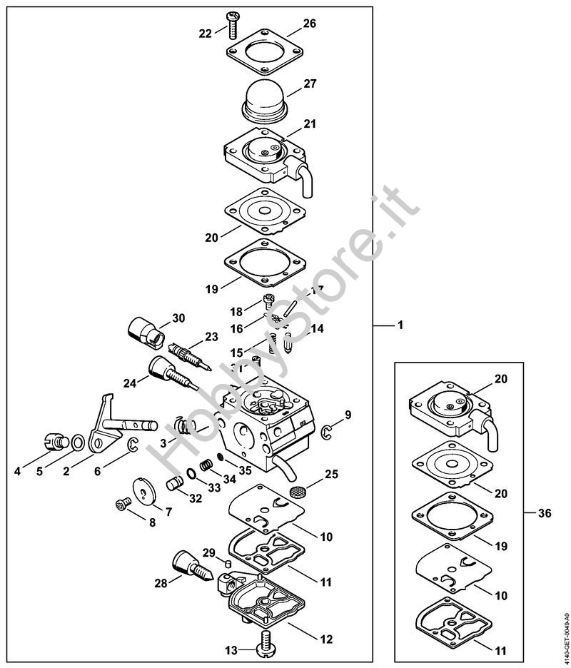 ATTENZIONE: Se nella lista sotto non compaiono i relativi ricambi riportati nell'esploso