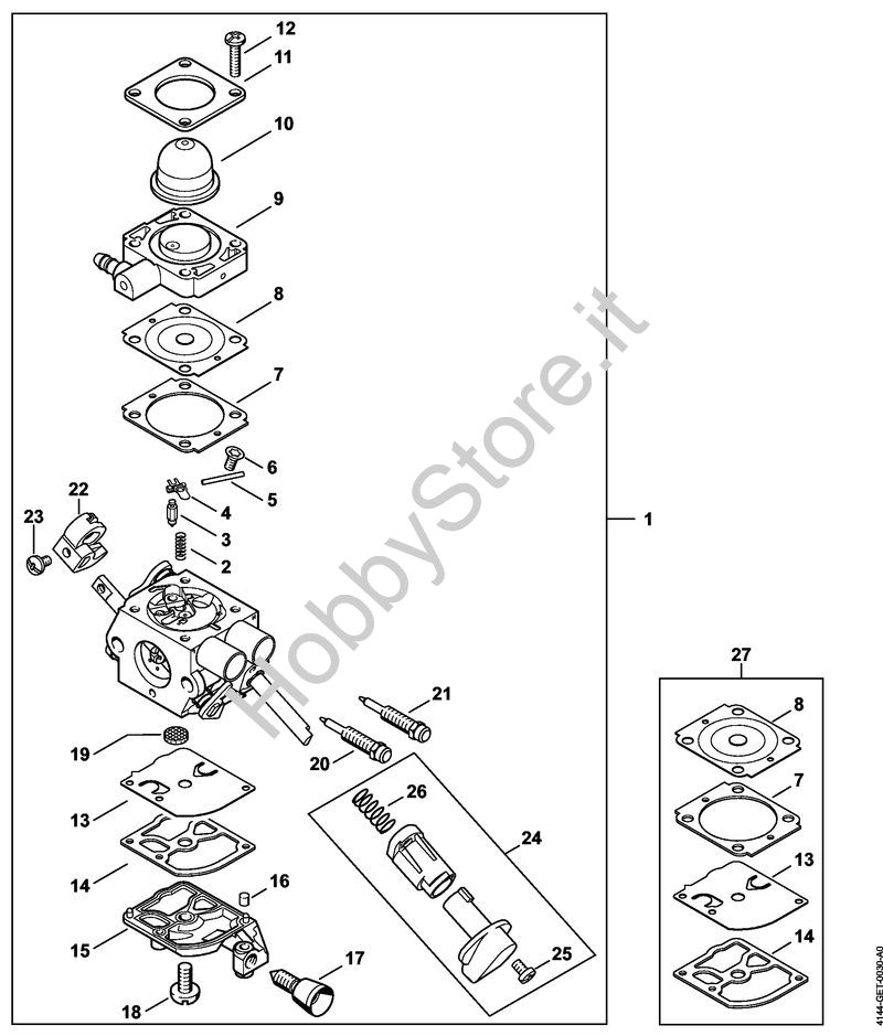 ATTENZIONE: Se nella lista sotto non compaiono i relativi ricambi riportati nell'esploso