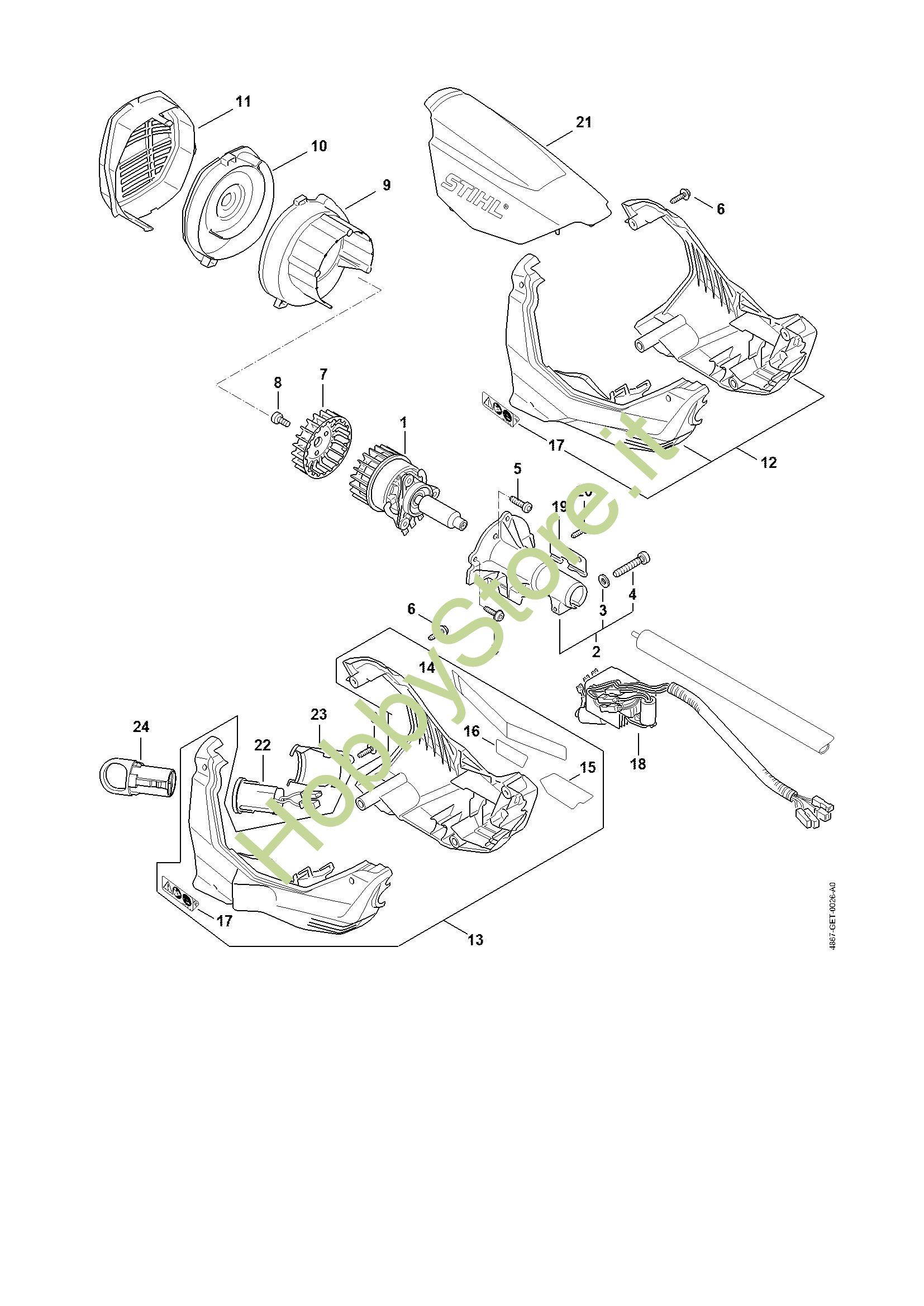 Ricambio Carcassa motore Motori Kombi a batteria (KMA) KMA 130 R STIHL Contiene anche i ricambi n. 17