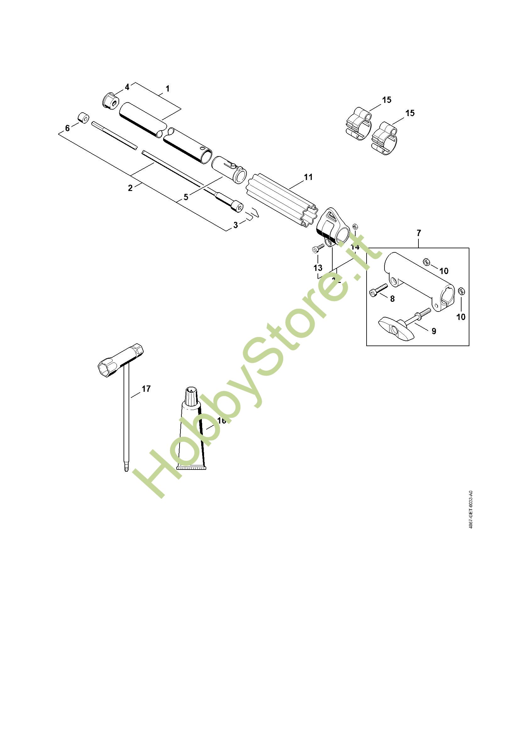 Ricambio Manicotto di accoppiamento Motori Kombi a batteria (KMA) KMA 130 R STIHL Contiene anche i ricambi da n. 8 a 10