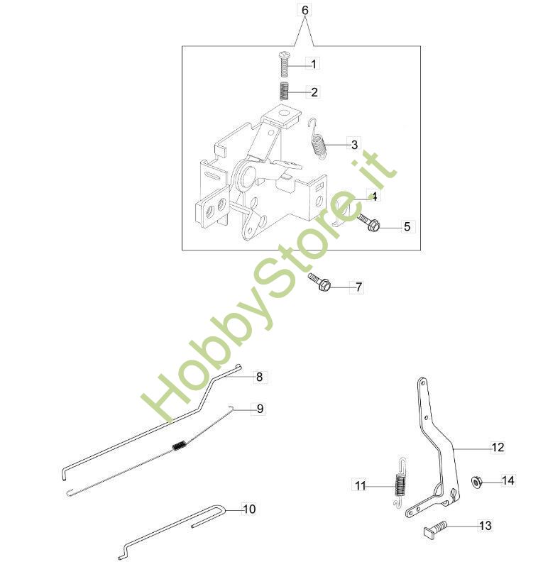 Ricambi relativi alle Leve di Controllo di un tosaerba elettrico G 44 TK Comfort Plus Oleomac a trazione. Indicare nel campo relativo l'anno di acquisto del tosaerba G44TK Comfort Plus (o G44TK semplice) e il numero relativo al ricambio scelto.