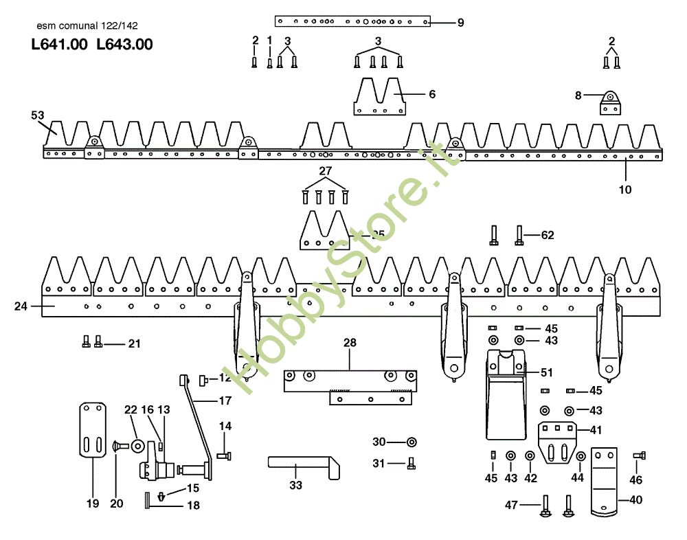 Ricambio Lama di taglio 142 cm Barra falciante ESM "COMUNAL" L0064100/L0064300 KAM 4 (Fino/Until 2009) Motocoltivatore della marca Nibbi Richiede pezzi:1