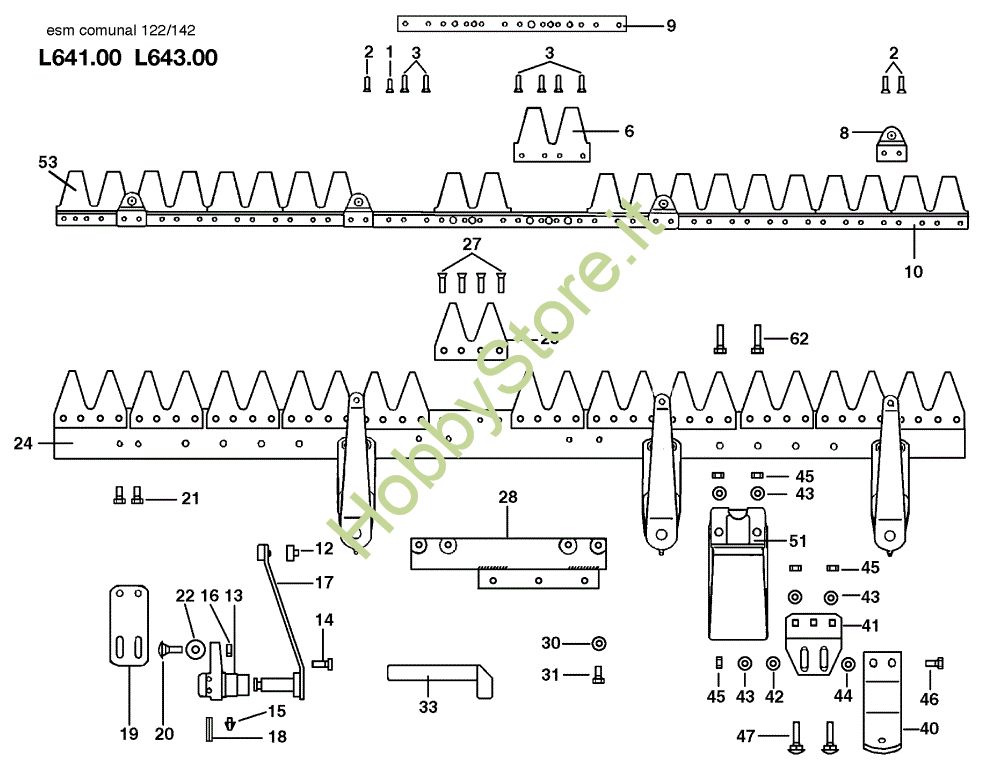 Ricambio Lama di taglio 142 cm Barra falciante ESM "COMUNAL" L0064100/L0064300 KAM 5 (Fino/Until 2009) Motocoltivatore della marca Nibbi Richiede pezzi:1
