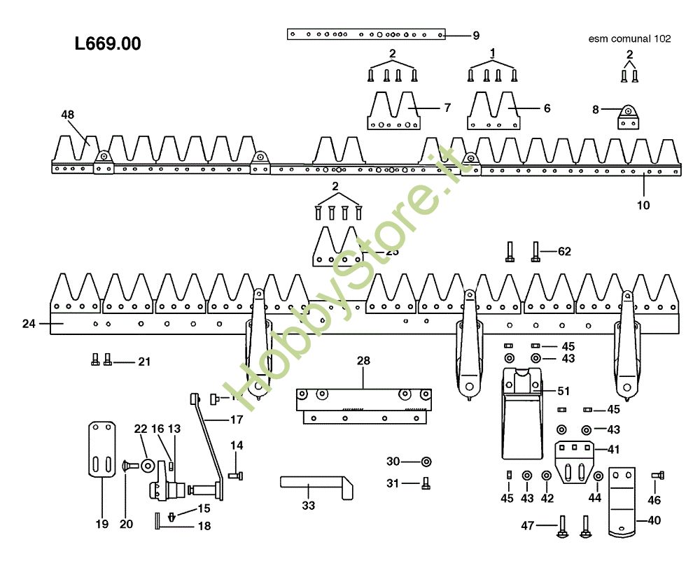 Ricambio Lama 102 cm Barra falciante L0066900 407 S Motocoltivatore della marca Efco Richiede pezzi:1