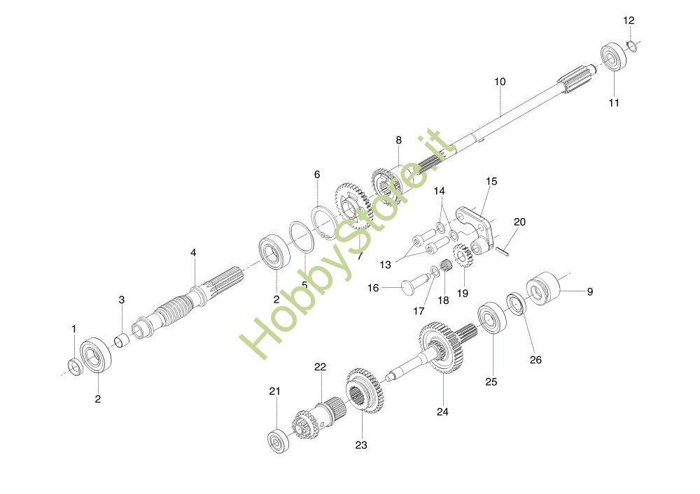 Ricambio Albero (Completo) Ingranaggi (Cambio) BRIK 5 S Motocoltivatore della marca Nibbi Richiede pezzi:1