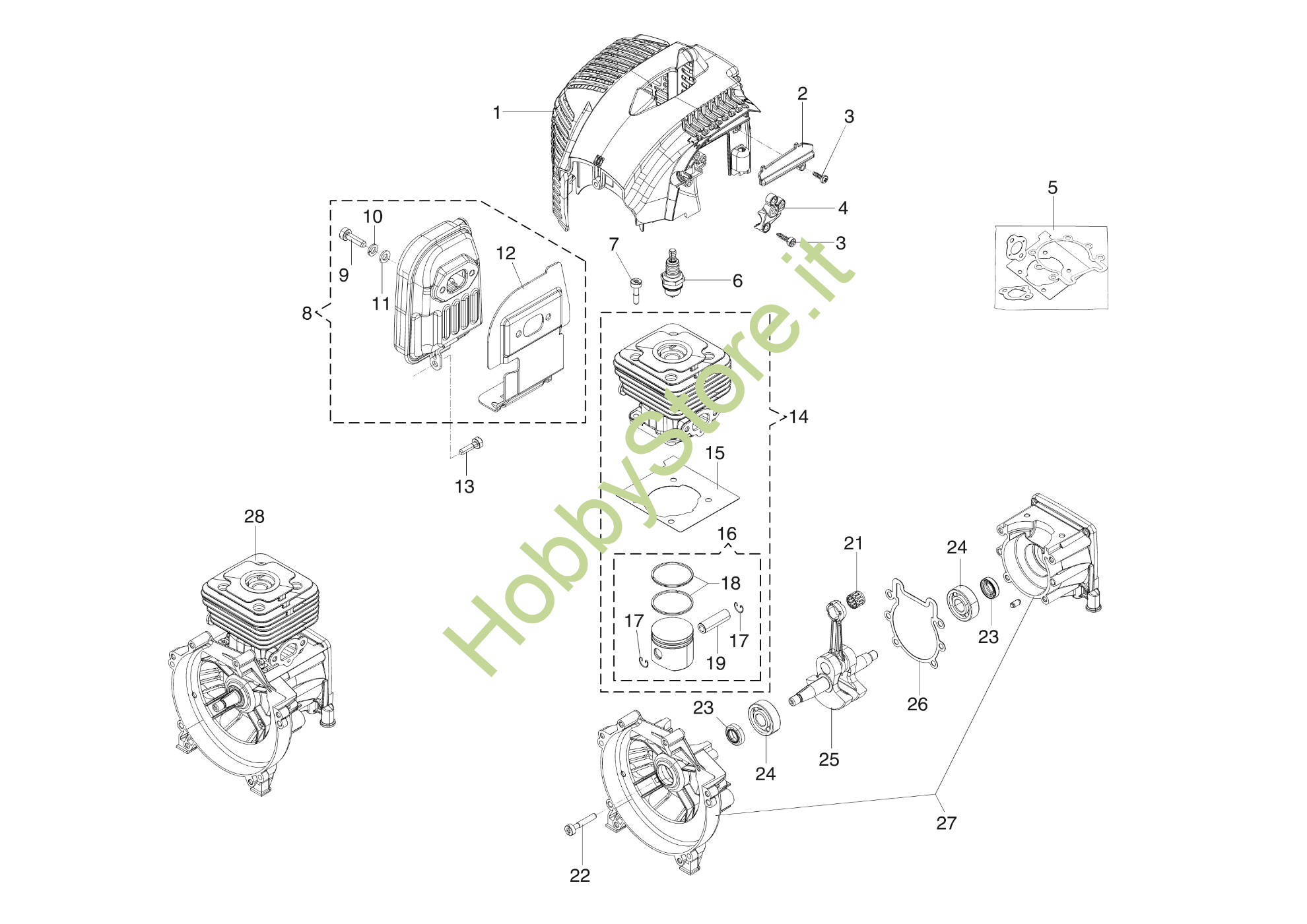 Tavola tecnica del motore per decespugliatore BC 400 S della marca Oleomac