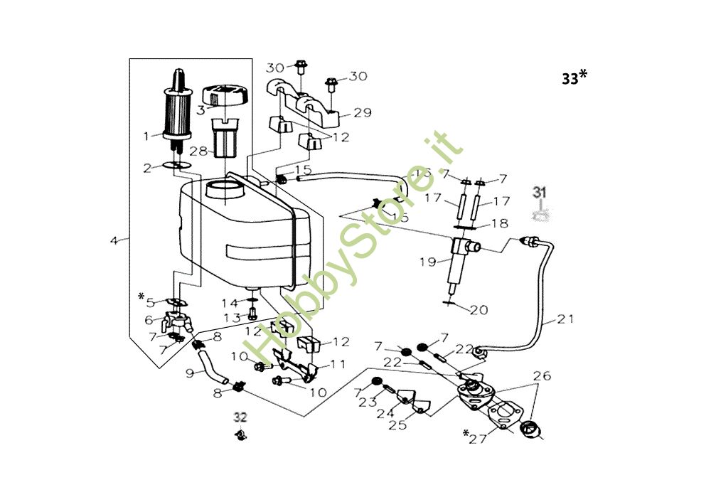 Ricambio Prigioniero Serbatoio completo MOTORE K9000 HD (Diesel) Motore della marca Efco Richiede pezzi:2