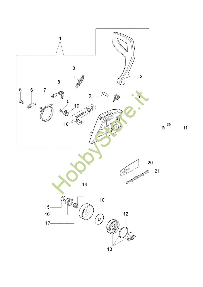 Ricambio Copricatena completo Frizione e freno 141 SP Motosega della marca Efco Richiede pezzi:1