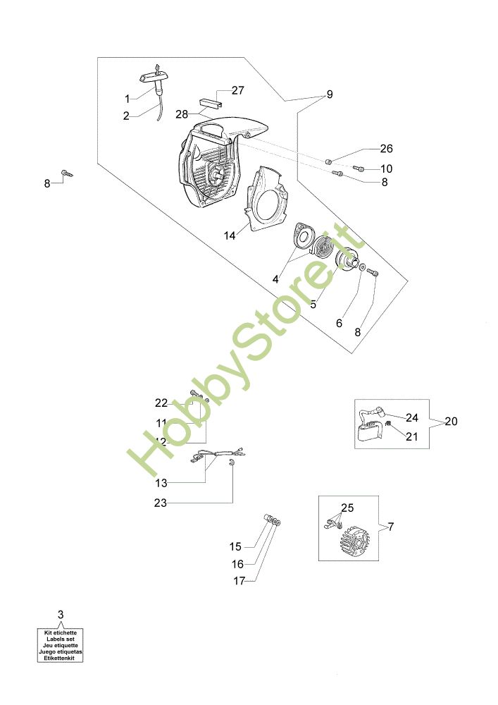 Ricambio Kit etichette Gruppo avviamento 140 Motosega della marca Efco Richiede pezzi:1