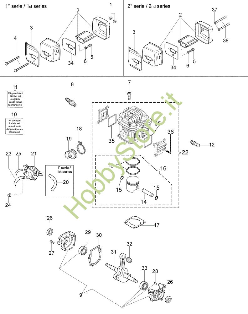 Ricambio Kit carburatore HDA-205E Motore 952 Motosega della marca Oleo-Mac Richiede pezzi:1