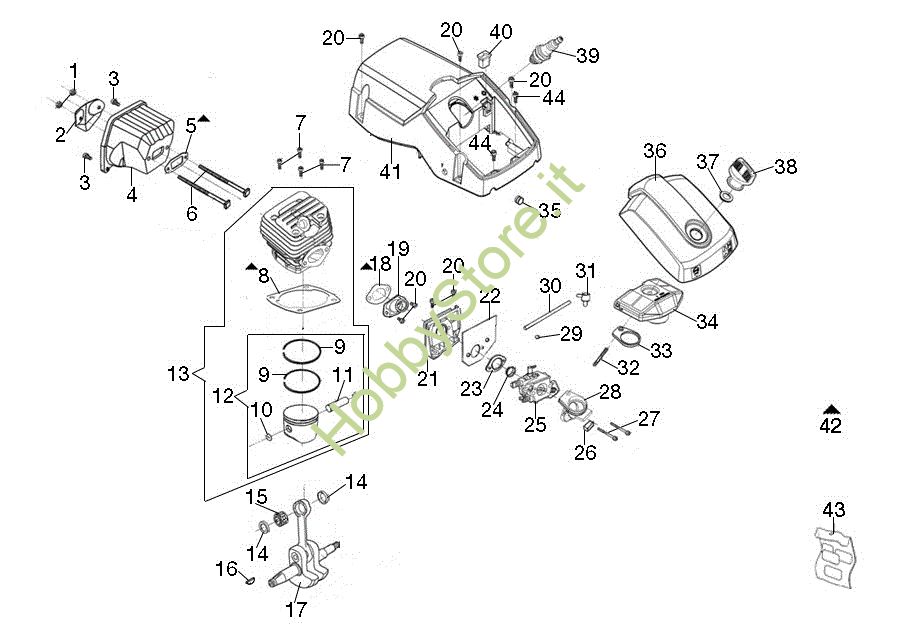 Ricambio Cilindro completo Motore GS 51 Motosega della marca Oleo-Mac Richiede pezzi:1