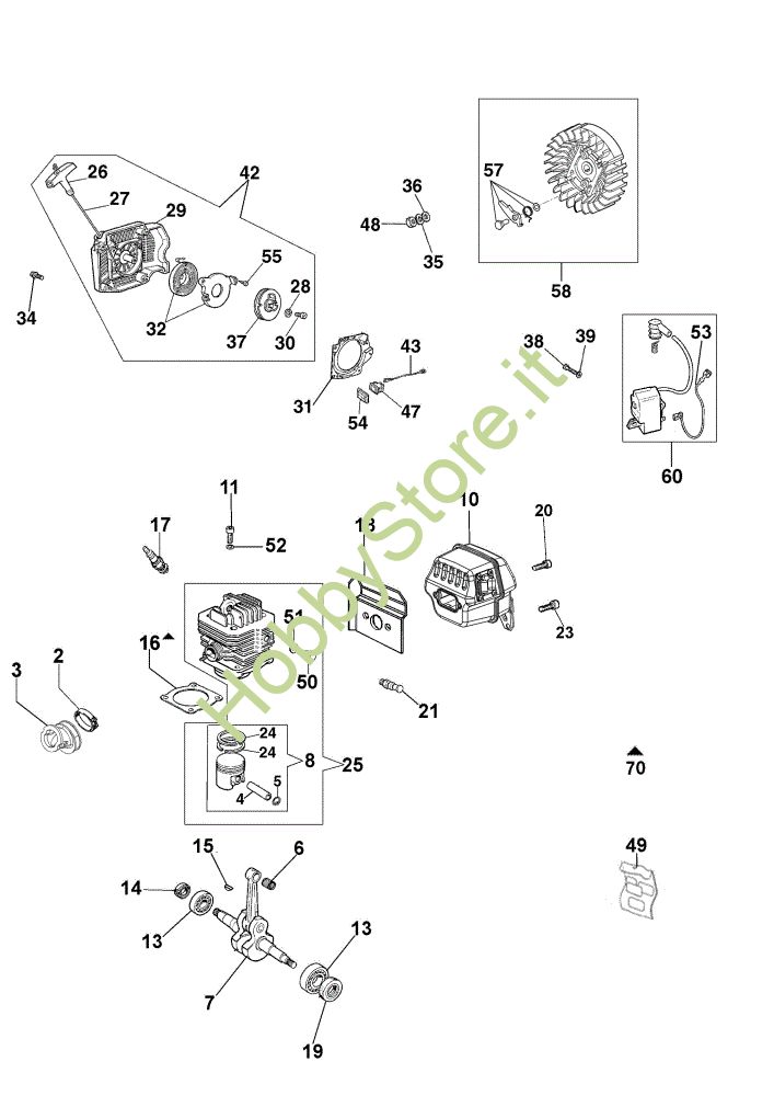 Ricambio Cilindro completo Ø48 Motore e avviamento MT 6300 Motosega della marca Efco Richiede pezzi:1