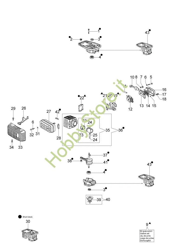 Ricambio Short block Gruppo motore TR 1551 Mototrivella della marca Efco Richiede pezzi:1