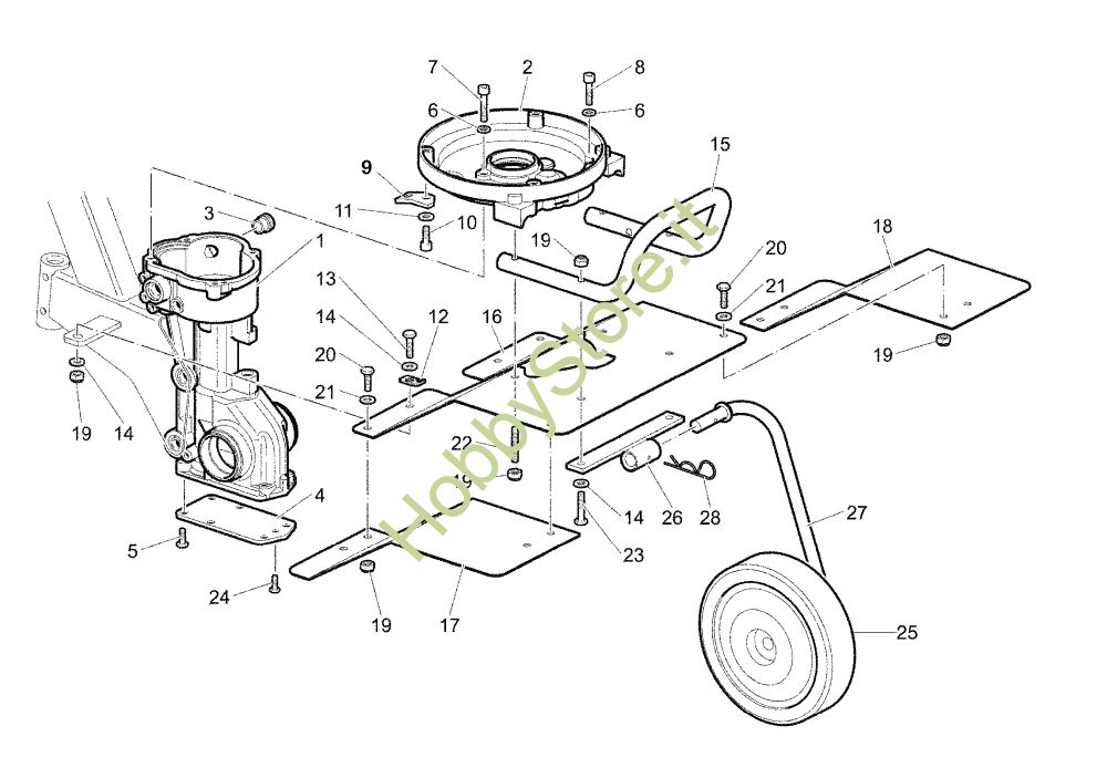 Ricambio Ruota con forcella Scatola cambio 112 (Fino/Until 2009) Motozappa della marca Nibbi Richiede pezzi:1