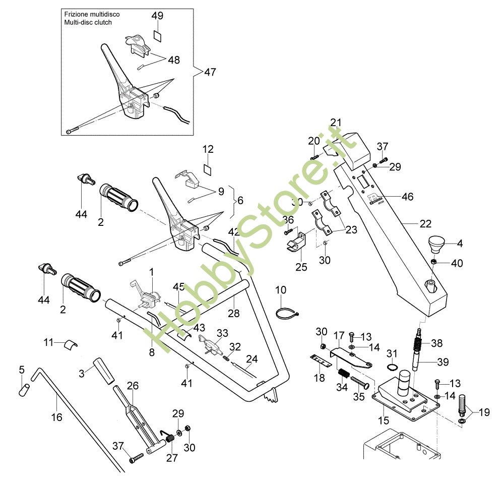 Ricambio Maniglia Stegola e comandi 115 (EN 709) (K800 H - SN T210) Motozappa della marca Nibbi Richiede pezzi:1