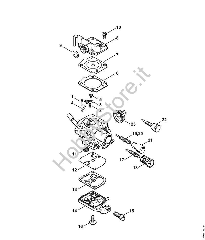 Ricambio Carburatore C1Q-S200D Motoseghe a benzina (MS) MS 150 TC-E STIHL Contiene anche i ricambi nr. da 1 a 18, 22, 23