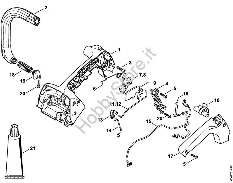 Ricambio Corpo impugnatura Motoseghe a benzina (MS) MS 150 TC-E STIHL Contiene anche i ricambi nr. da 1 a 7, 9 a 11, 13 a 17