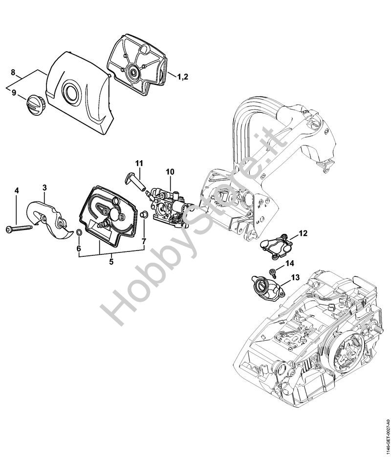 Ricambio Coperchio sede carburatore Motoseghe a benzina (MS) MS 151 TC-E STIHL Contiene anche i ricambi n. 9