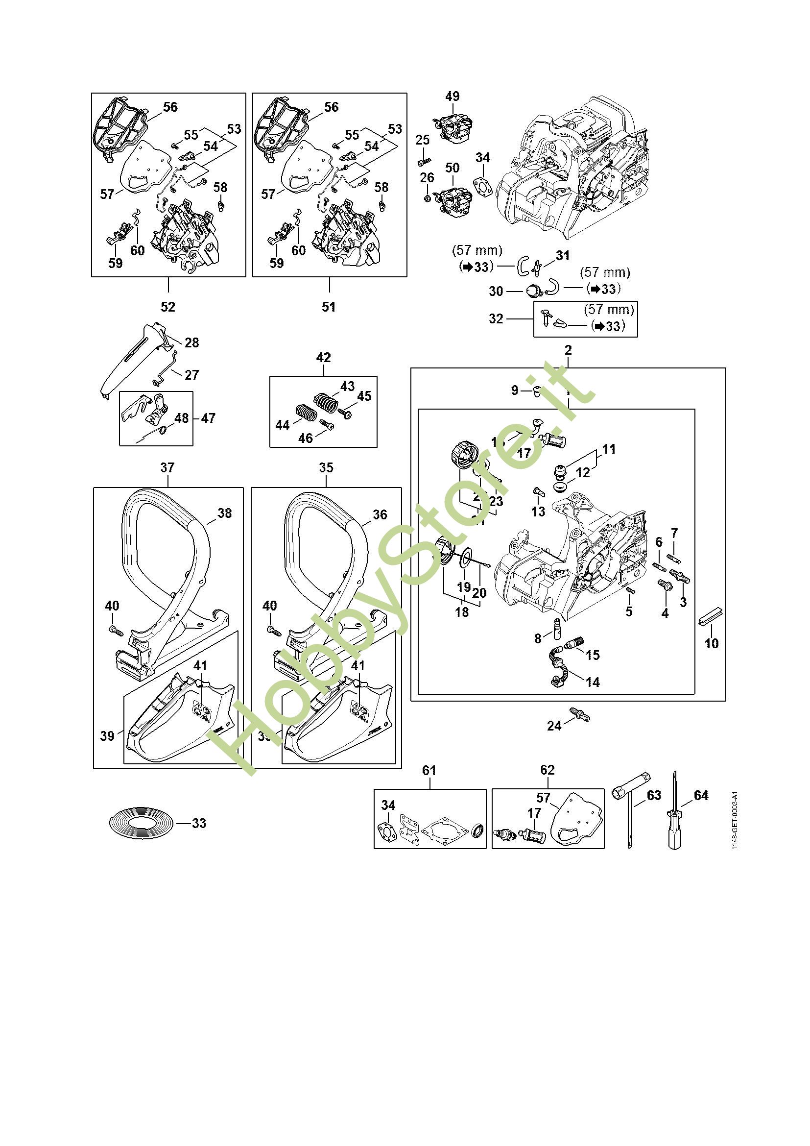 Ricambio Corpo impugnatura Motoseghe a benzina (MS) MS 162 C-BE STIHL Contiene anche i ricambi nr. 36 e da 39 a 41
