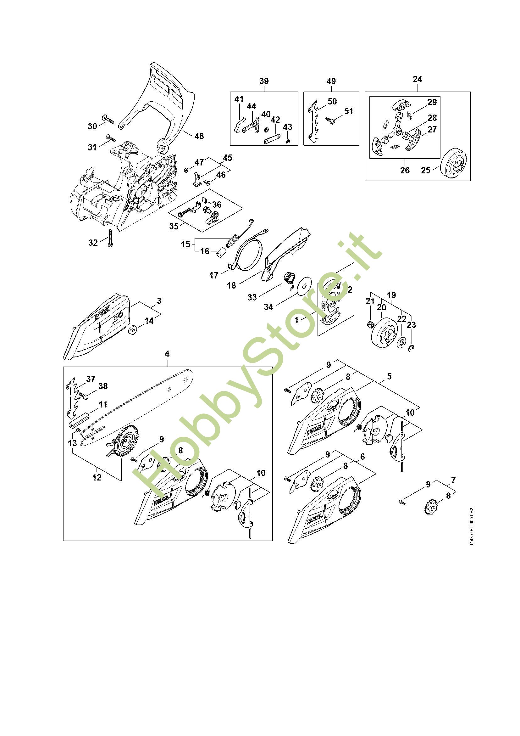 Ricambio Dispositivo ricupero catena Motoseghe a benzina (MS) MS 172 STIHL Contiene anche i ricambi n. 46 e 47