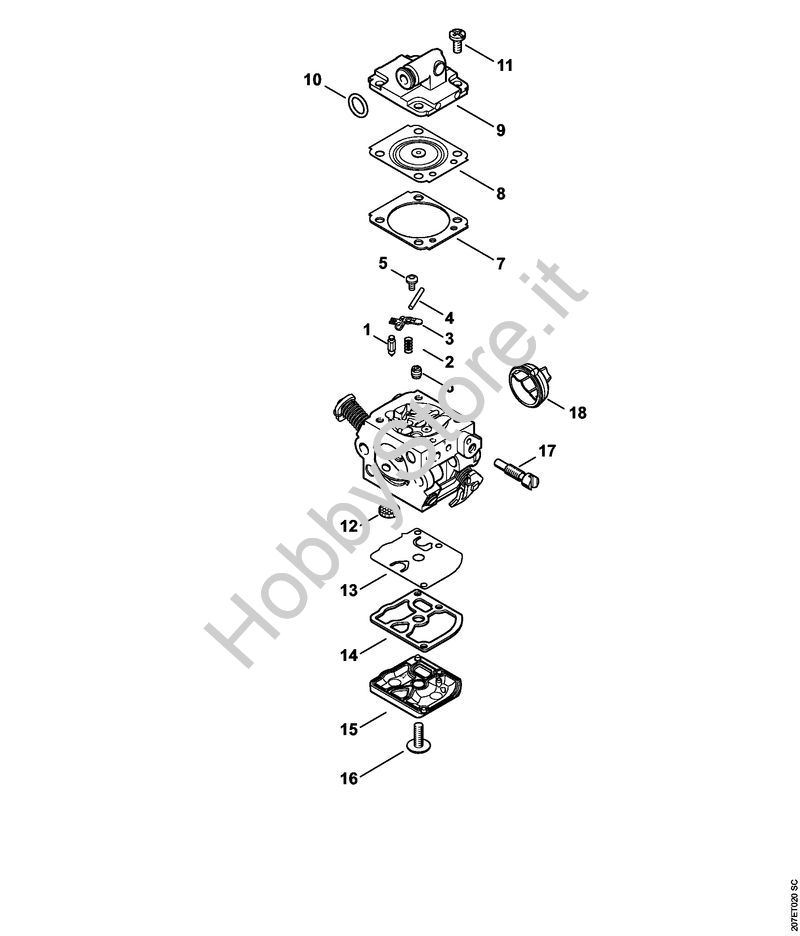Ricambio Carburatore C1Q-S286D Motoseghe a benzina (MS) MS 180 2-MIX STIHL Contiene anche i ricambi da n. 1 a 18