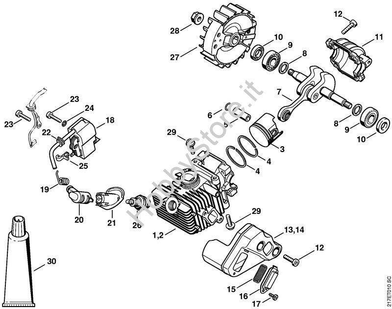 Cilindro con pistone, impianto di accensione Motoseghe a benzina (MS) MS 192 T della marca STIHL