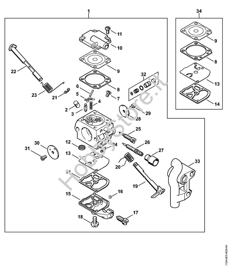 Ricambio Serie particolari carburatore Motoseghe a benzina (MS) MS 200 STIHL Contiene anche i ricambi nr. 8, 9, 13, 14