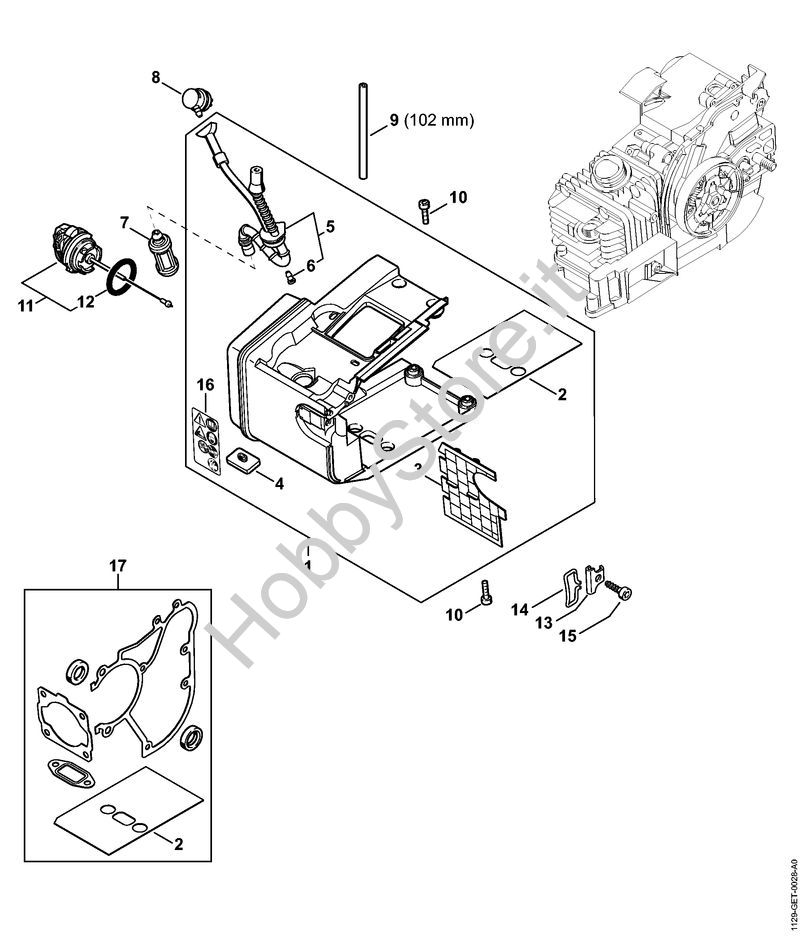 Ricambio Corpo serbatoio Motoseghe a benzina (MS) MS 200 T STIHL Contiene anche i ricambi nr. da 2 a 6 e 16