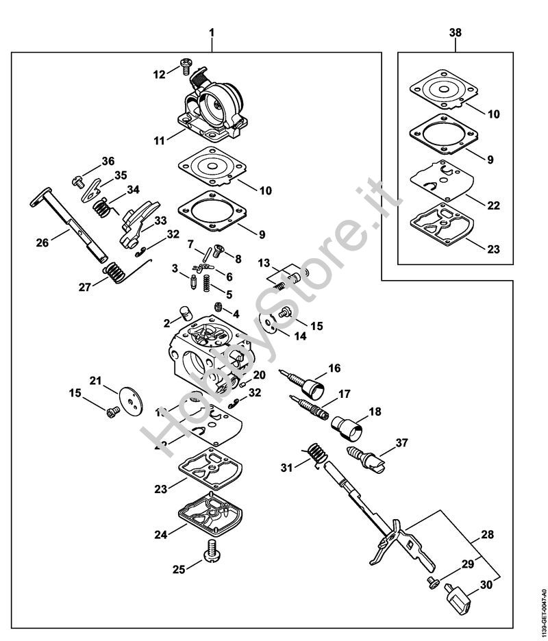Ricambio Carburatore C1Q-S119D Motoseghe a benzina (MS) MS 211 STIHL Contiene anche i ricambi da n. 2 a 37