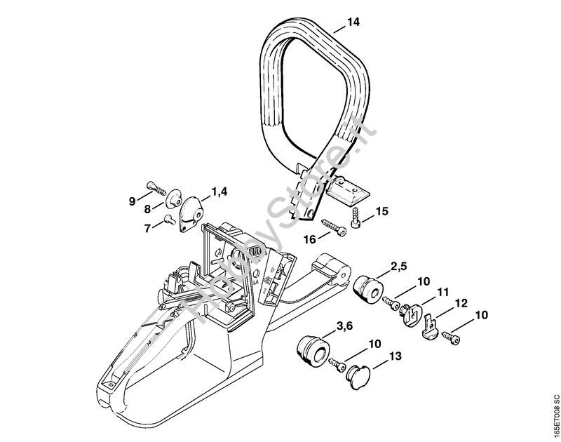 Ricambio Manico tubolare Motoseghe a benzina (MS) MS 240 STIHL Contiene anche i ricambi n. 15 e 16