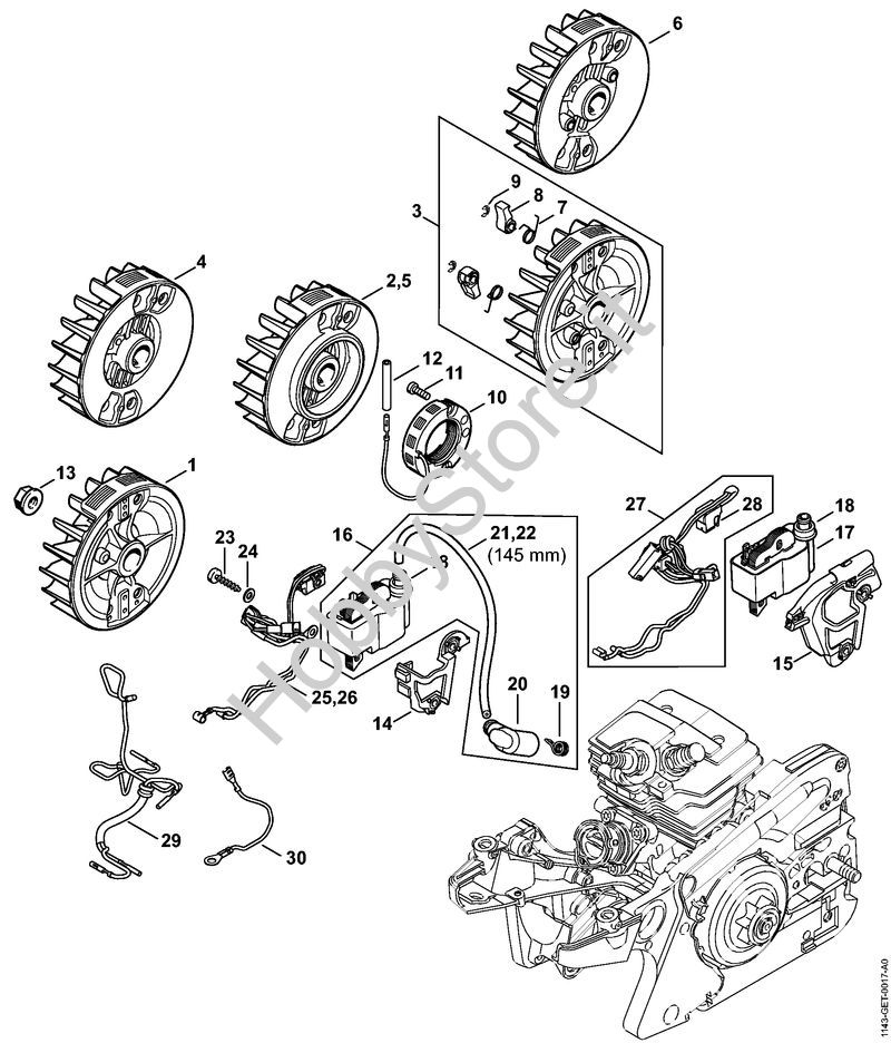 Ricambio Apparecchio di comando Motoseghe a benzina (MS) MS 241 C-M VW STIHL Contiene anche i ricambi da n. 18 a 21