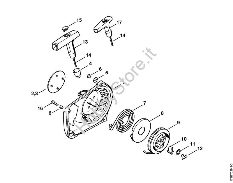 Ricambio Carenatura ventola con dispositivo di avviamento Motoseghe a benzina (MS) MS 260-D STIHL Contiene anche i ricambi da n. 1 a 15