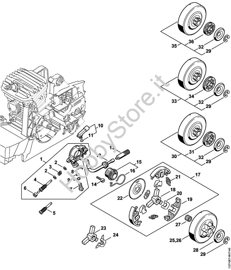 Ricambio Frizione Motoseghe a benzina (MS) MS 310 STIHL Contiene anche i ricambi da n. 18 a 22