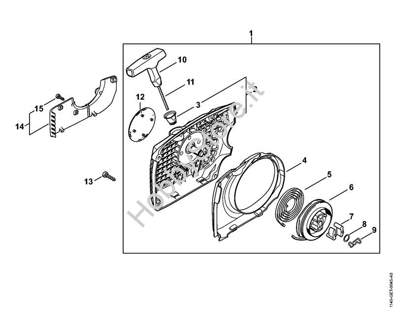 Ricambio Carenatura ventola con dispositivo di avviamento Motoseghe a benzina (MS) MS 311 STIHL Contiene anche i ricambi da n. 2 a 12