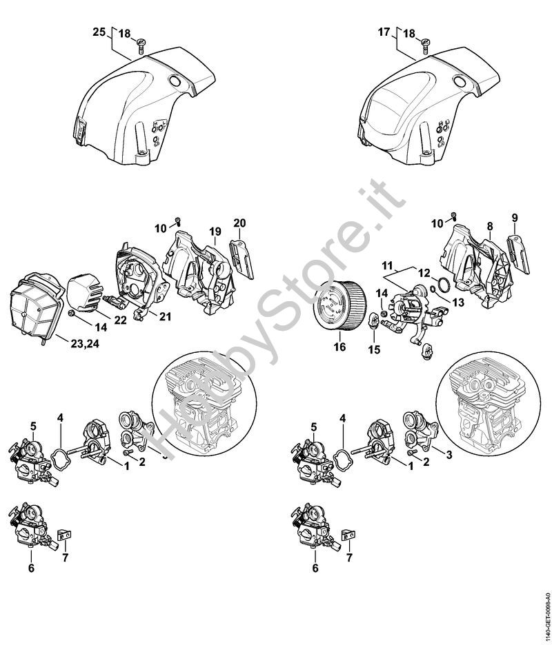 Ricambio Cappottatura Motoseghe a benzina (MS) MS 311 STIHL Contiene anche i ricambi n. 18