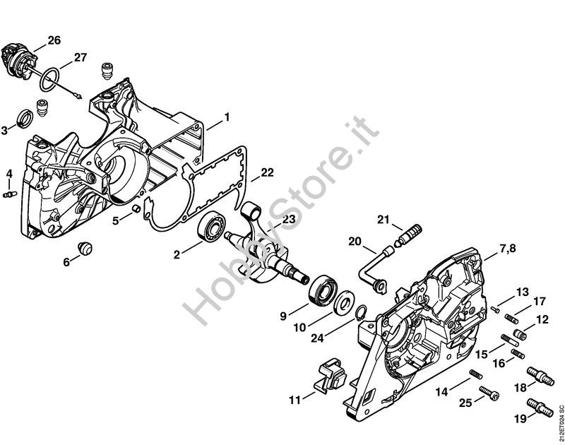 Ricambio Semi-carter albero a gomito Motoseghe a benzina (MS) MS 341 STIHL Contiene anche i ricambi nr. da 2 a 6, 26, 27