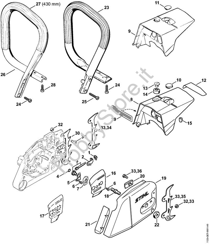 Ricambio Manico tubolare Motoseghe a benzina (MS) MS 360 C STIHL Contiene anche i ricambi n. 24 e 25