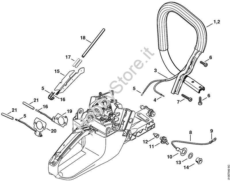Ricambio Manico tubolare Motoseghe a benzina (MS) MS 361-W STIHL Contiene anche i ricambi da n. 3 a 5